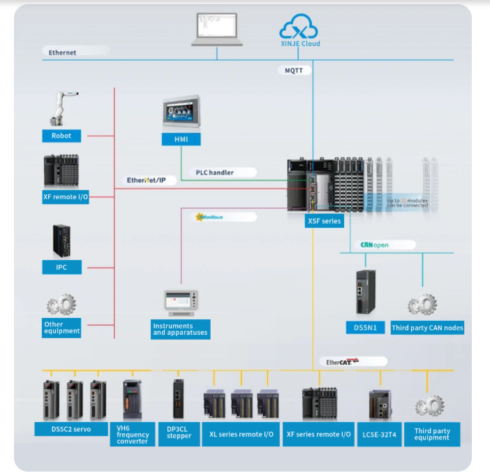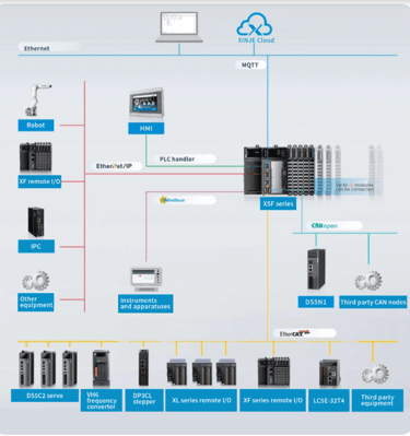 • XSF prend en charge la plate-forme Codesys, peut s'adapter au logiciel de programmation XINJE XS Studio, est conforme à la norme IEC61131 et prend en charge la spécification de programmation PLCopen.