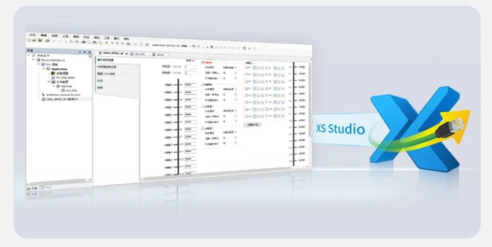 • XS Studio intègre la programmation PLC, l'IHM visuelle, l'API de sécurité, le cœur du contrôleur en temps réel, le bus de terrain et les fonctions de contrôle de mouvement, offrant un environnement complet de configuration, de programmation, de débogage et de surveillance capable de gérer de manière flexible et libre le puissant langage IEC.
